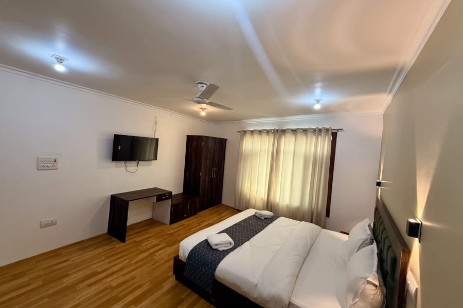 The Super Super Deluxe Room at Hotel Alif Stay offers a perfect blend of elegance, space, and comfort. Designed with tasteful interiors and warm lighting, the room features a plush king-size bed, cozy seating area, and large windows that let in natural light, offering a refreshing view of the surroundings. Whether you're traveling for leisure or business, the room ensures a relaxing environment with modern amenities like high-speed Wi-Fi, flat-screen TV, tea/coffee maker, and a spacious wardrobe.